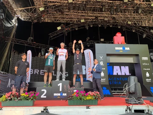 Im Ziel falle ich meinen Supportern um den Hals, spiele aber Kräuterweiblein und suche in den Stauden nach Brenneselblätter, es ist mein drittes Telefonat – aller guten Dinge sind drei.🤣😂 Ergebnis: Ich habe meine geheim gehaltenen Ziele erreicht. Mit 11:09:03 (Platz 480 von 1881 Startern) werde ich 2ter und somit österreichischer Vizemeister in meiner AK, habe zum ersten Mal als Zweiter einen Stockerlplatz bei einem Ironman Rennen 🥈🥈und ich habe mich drittens für die Ironman Langdistanz Weltmeisterschaft in Nizza im September 2023 qualifiziert – Aller guten Dinge sind drei.👍👍👍