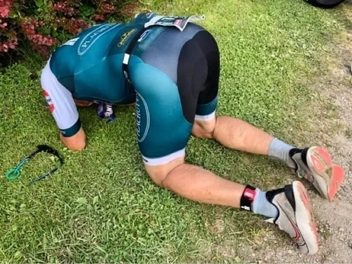 Nach 05:23:17 steige ich als 2ter in meiner AK M60/64 vom Rad und laufe raus, es geht überraschend locker und ich weiß „das wird ein geiles Rennen“ Die ersten 5k laufe ich zwischen 05:10/05:20 Pace👍💪 Bei km 20, meine HM Zeit geht auf 01:59:00, teilt mir meine Polar Uhr sehr nett mit: „Prima du hast dein Aktivitätsziel heute erreicht“ und schaltet sich aus Oidaaaa 😡 Ganz frech schalte ich sie wieder grantig ein. Nach weiteren 5k - ich hatte inzwischen wieder einmal Mööööööööök angerufen und mit Montezuma einen längeren Round Table im Gebüsch zum Thema „Aloah scheiß dich nicht zu lange an“💩 – teilt mir die Polar wieder unmissverständlich mit: „Prima du hast…eh schon wissen“ und schaltet sich wieder aus Liebe Polar „Aller guten Dinge sind drei“ aber in einem Rennen dreimal zu viel😡😡😡 Ich wechsle jetzt von der Glaubensgemeinschaft der Polarianer in die Sekte der Garminesen.