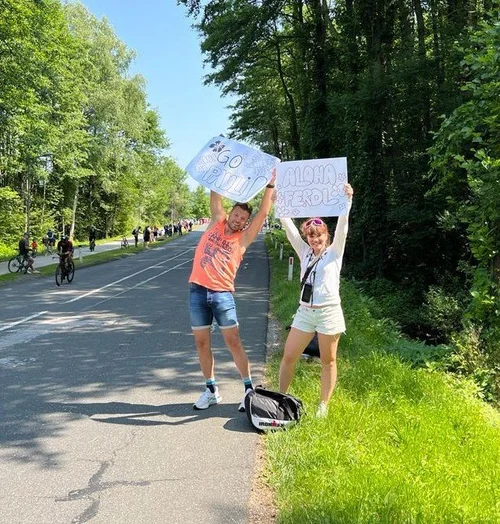 Plötzlich am Südufer bei km 100 schreit mir ein Radfahrer Tipps betreffend Trittfrequenz, Meter sparen und nach vorne schauen zu. Mein alter Schulfreund Roland Königshofer Oly - dreifacher Bahnweltmeister am Rad – den ich 45 Jahre nicht gesehen habe, megaaaa!!!! 😘👍