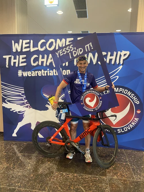 Nach ca 2000 Meter kam ich in 33:23 erfrischt und munter als 3ter meiner AK aus dem Wasser. Auf der Radstrecke machte ich kaum Gefangene und zog zügig, trotz Gegenwind auf der Hälfte der Strecke, mit 221 Watt NP und 36,6km/h die knapp 90 km durchs Feld. „Not so bad“ denke ich mir, als ich mit der 4rt besten Radzeit meiner AK nach 02:25:15 vom Bike elegant runterhüpfen will💪👍