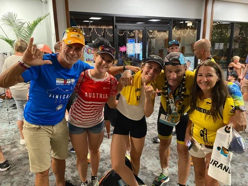 Ja und meine Gedanken: Yessss I did it again, mit Anstand und mit einer für mich persönlich zufriedenstellenden Leistung, habe ich jetzt zum Zweiten Mal eine Ironman Langdistanz Weltmeisterschaft auf Hawaii gefinisht. Nur eines ist auch sonnenklar: Ohne meine Familie, die mich trägt, auffängt und unter Leitung der besten Ehefrau von allen wieder ab und zu in die Normalität und Realität „runterholt“, ohne meine “Frotzn“ die sooooo stolz auf mich sind und so mitfiebern und -leiden, ohne der ehrlichen Wertschätzung meiner Freunde und meiner Chefs/Arbeitskollegen/innen im BK, ohne die großzügige Unterstützung meiner Sponsoren und der Professionalität meines Physios und meines Trainers, wäre es nicht möglich gewesen, dieses Ergebnis heimzubringen.
