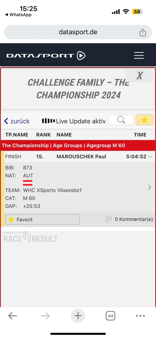 Dass meine Pobacke kurz glaubt als Waldviertler Knödel mich beim Laufen zu hindern, vermeide ich mit Dehnen in der Wechselzone. Ich laufe dann auch nicht so schlecht weg 💪👍motorisch ganz gut, die Achillessehen hält sich an den Vertrag und die Pace bewegt sich von 05:09 bis 05:51👍not so bad denk ich mir. Dann aber muss ich nachlassen, trotzdem ich bleibe nur kurz bei den Laben stehen und leide nicht wirklich. Ich finishe den Lauf zwar nur in 02:02:32 und werde mit 05:04:52 von 38 Startern in meiner Agegroup doch noch als 15ter.