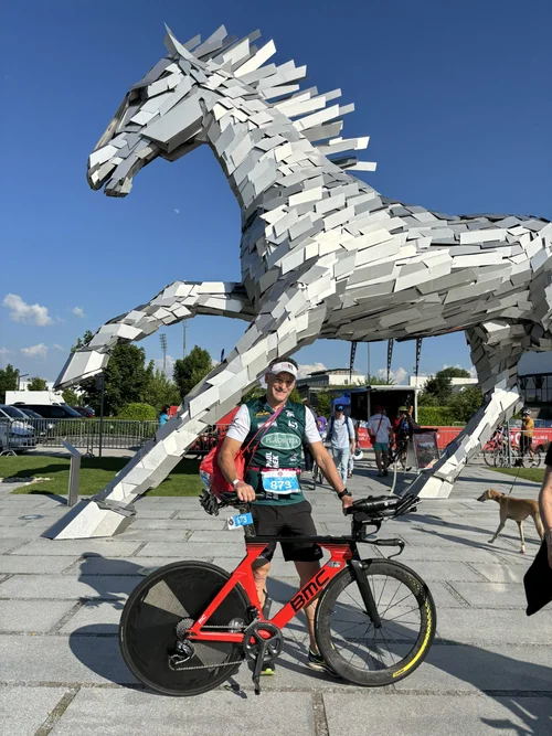 Die beste Ehefrau von allen, meine Martina, unterstütz mich bis zum Schwimmstart, wo es nur geht. 😘💪 dafür winke ich ihr aus dem eiskalten Wasser 🥶nach ca. 900 Metern 🤣Es geht wirklich gut, ich komme nach soliden 0:33:49 aus dem Wasser, verbrate nicht soviel Zeit in der Wechselzone als üblich👍Dass ich mich dann - „potschert“ wie immer - bei der Garmin verdrücke und dadurch am Ende 14 Einheiten auf Strava habe ist eine andere Geschichte 🤣😱